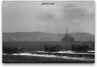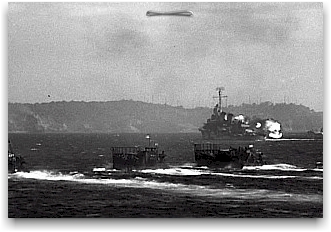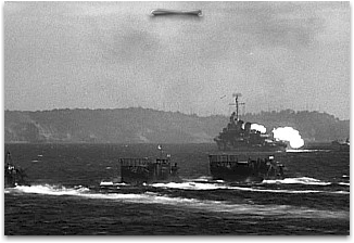 Tanks, loaded troops and equipment on LCM's for the move of some five miles