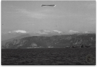 island with a cloud of dust and smoke. Following the B-24 bombers at 8:30
