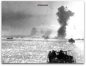 the Mariveles, Bataan, Luzon landing force comes under fire from Corregidor Island, 15 February 1945. Photo from the USS LCI National