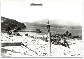 heavy guns at daylight until our first wave touched shore amid the dust